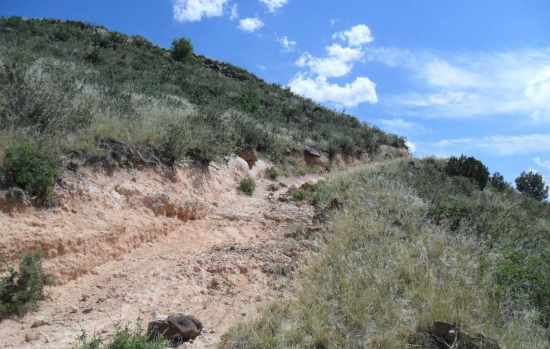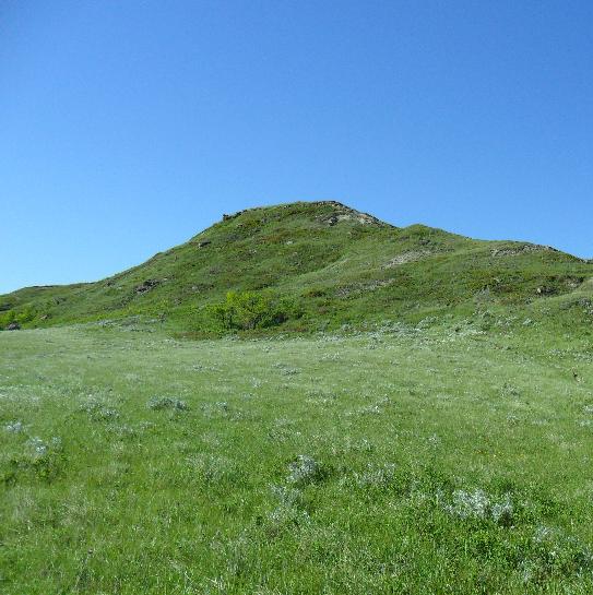 I was all alone climbing the chalky heights. I could hear cows grazing on the fields below. When I got to this point, I thought I had made it, but this was in fact a "false summit." The true summit was a couple dozen yards beyond this short rise. |