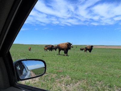 The highest point in Nebraska, like the highpoint of North Dakota, is on private property. The owner of this property happens to raise buffalo on the land. I totally did not expect to drive through a herd of buffalo that day. | ![]() |