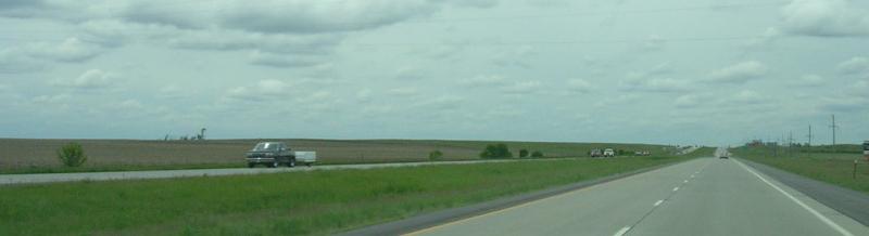 We had to get back on Interstate 29 headed north, but I didn't want to go through Belleview again. From Papillion, we took Highway 75 north to Interstate 80 east, which took us to I-29. We crossed the Missouri River again into Council Bluffs, Iowa, where we headed north towards Souix City. From then on, I had Satori going as fast as she could go. It was a chilly morning, with some light sprinkles. We passed LeMars, Iowa, "Ice Cream Capital of the World." The road ran past miles and miles of farmland. Interstate 29 is part of the Lewis & Clark Trail, commemorating the expedition of discovery which traveled through the area in 1804. Sergeant Charles Floyd was the only member of the expedition to die during the journey, some think of a burst appendix. He was buried atop a bluff overlooking the Missouri River. The highway runs right past his grave, which is marked by a 100-foot oblisk just off Exit 113 near Souix City. The oblisk is recognized by the U.S. Department of the Interior as the United States' first National Historic Landmark.