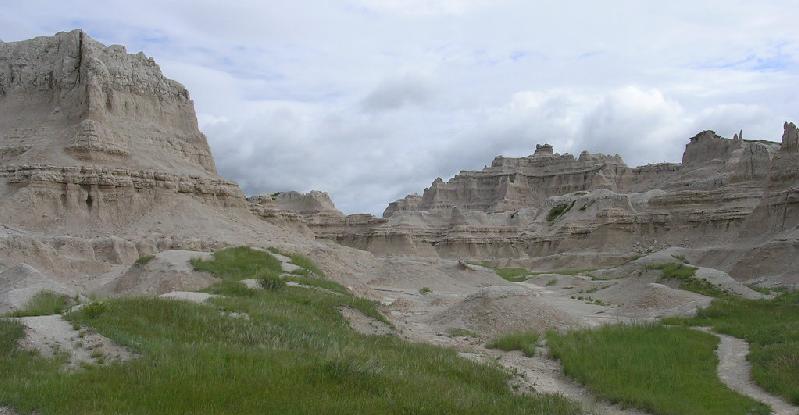 There was an impressive mountain vista near Mile Marker 174, but even that couldn't cheer me up. The dark clouds overhead reflected my mood. It was getting late in the day, sunset was coming, and I didn't think we'd make it to the Badlands in time. Down the road, however, we passed a sign: "Now Entering Mountain Time Zone." Zack announced that made it an hour earlier. Instead of 4:42, it was only 3:42. We'd be able to make it to the Badlands on time! I said, "Zack, you're a genius!" "Yes, that's correct," he replied (imitating Bucky from the comic strip Get Fuzzy). No matter how late we were, we were still an hour early. |